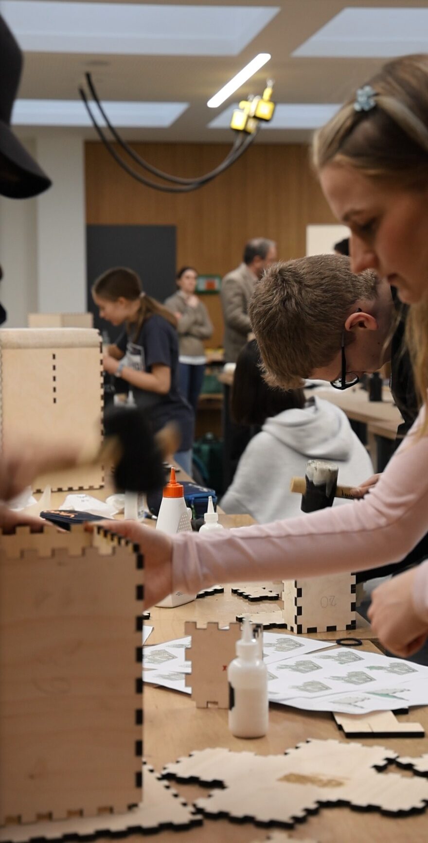 Zentrales Projekt war der Bau einer Cajón, eine Art Sitztrommel. Die Schülerinnen und Schüler entwickelten individuelle Designs, passten Formen und Öffnungen an und gestalteten ihre Werkstücke kreativ und individuell. Die fertigen Instrumente wurden anschließend eigenständig montiert.
